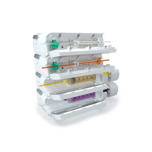 - Freno del pistón de la jeringa: Con su exclusivo freno del pistón de jeringa, la bomba evita el flujo libre y los errores de manipulación al cambiar las jeringas. La innovadora tecnología de accionamiento proporciona una entrega de arranque y un rendimiento de la bomba altamente precisos para una mayor seguridad y comodidad al cambiar las jeringas.